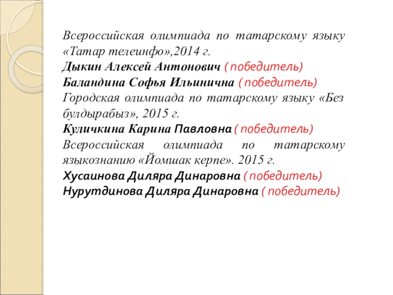 ( победитель по татарскому языку)