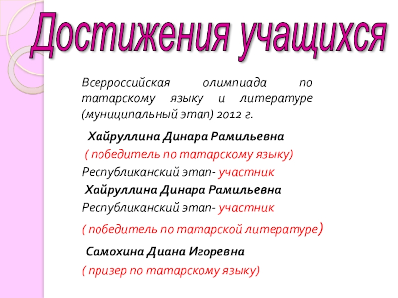 ( призер по татарскому языку)