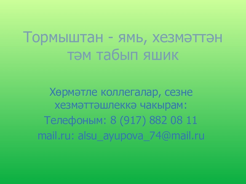 Это сайт презентаций, где можно хранить и обмениваться своими презентациями, докладами, проектами, шаблонами в формате PowerPoint с другими пользователями. Мы помогаем школьникам, студентам, учителям, преподавателям хранить и обмениваться учебными материалами.
