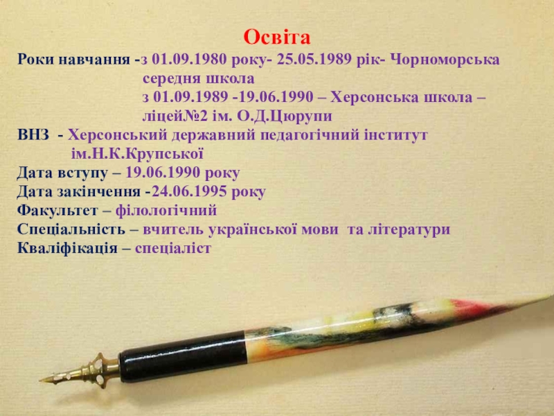 Роки навчання -з 01.09.1980 року- 25.05.1989 рік- Чорноморська