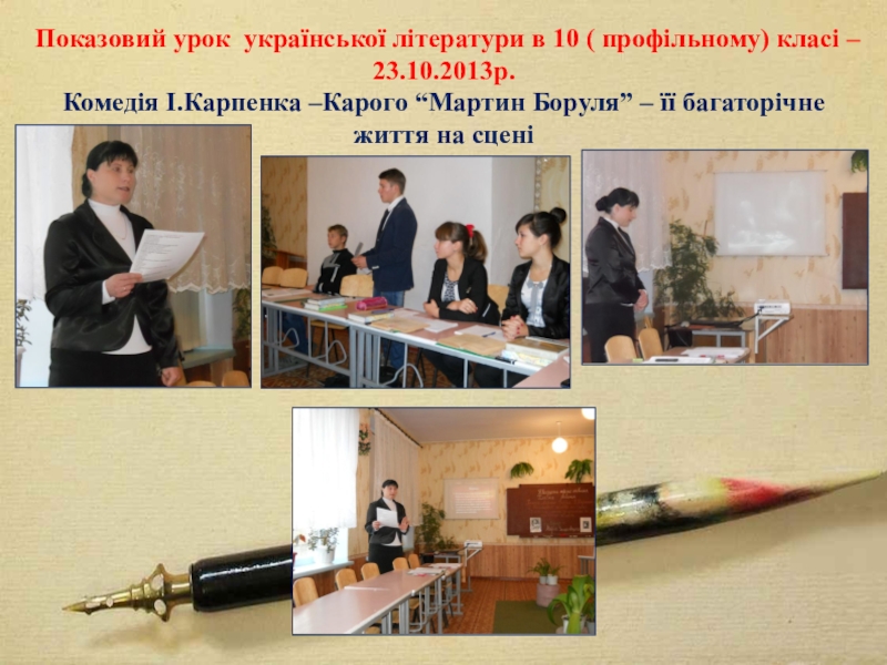 Слайд 41Показовий урок української літератури в 10 ( профільному) класі – 23.10.2013р.