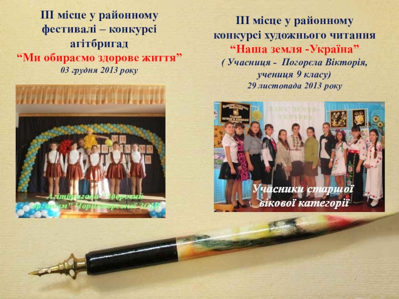 Слайд 42ІІІ місце у районному фестивалі – конкурсі агітбригад