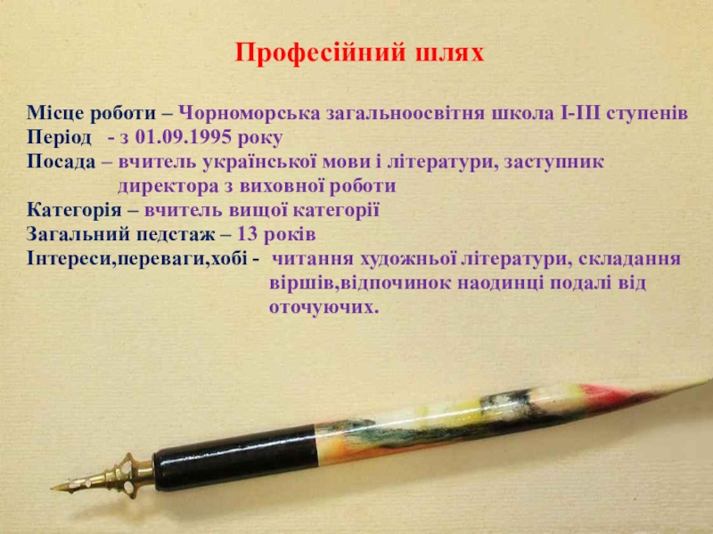 Місце роботи – Чорноморська загальноосвітня школа І-ІІІ ступенів