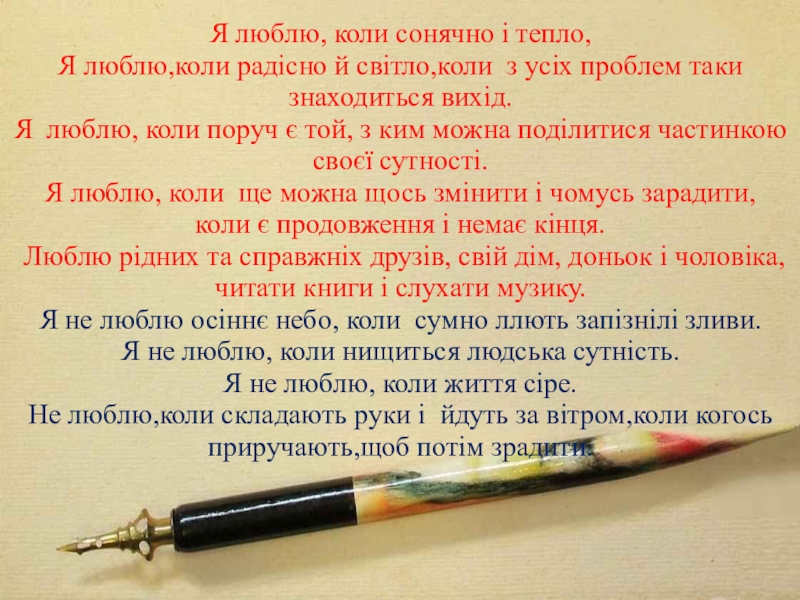 Не люблю,коли складають руки і йдуть за вітром,коли когось приручають,щоб потім зрадити.