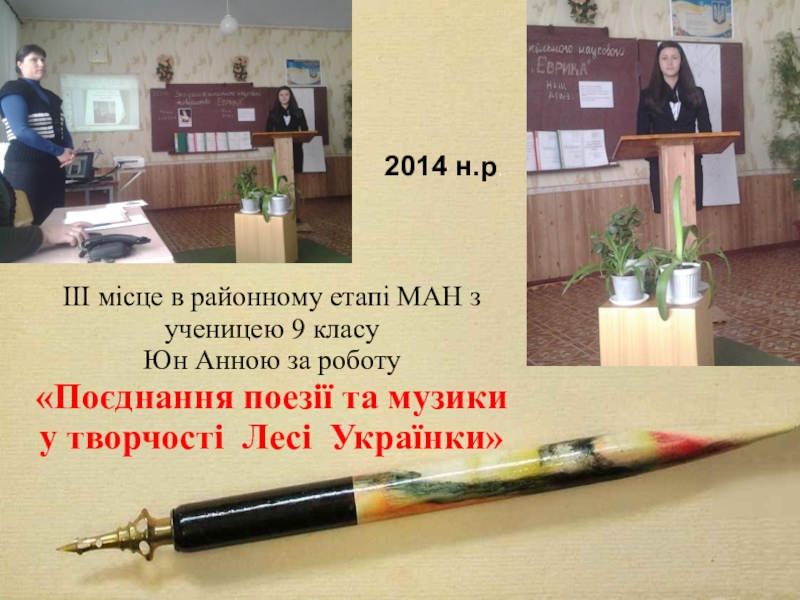Слайд 44ІІІ місце в районному етапі МАН з ученицею 9 класу