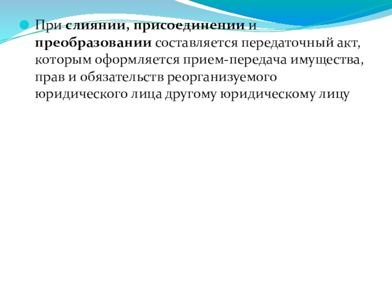 При слиянии, присоединении и преобразовании составляется передаточный акт, которым оформляется прием-передача