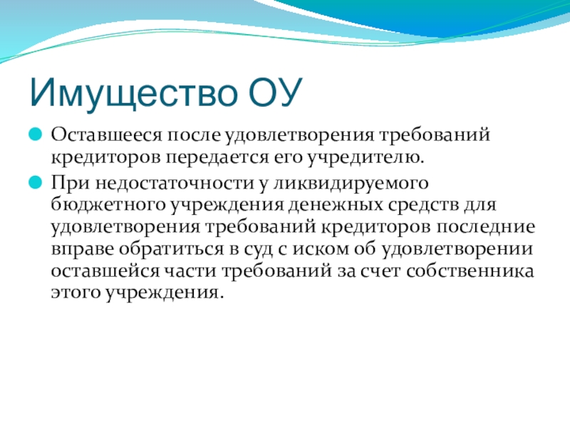 ликвидируемого бюджетного учреждения денежных средств для удовлетворения требований кредиторов последние вправе обратиться в суд с иском об удовлетворении оставшейся части требований за счет собственника этого учреждения.