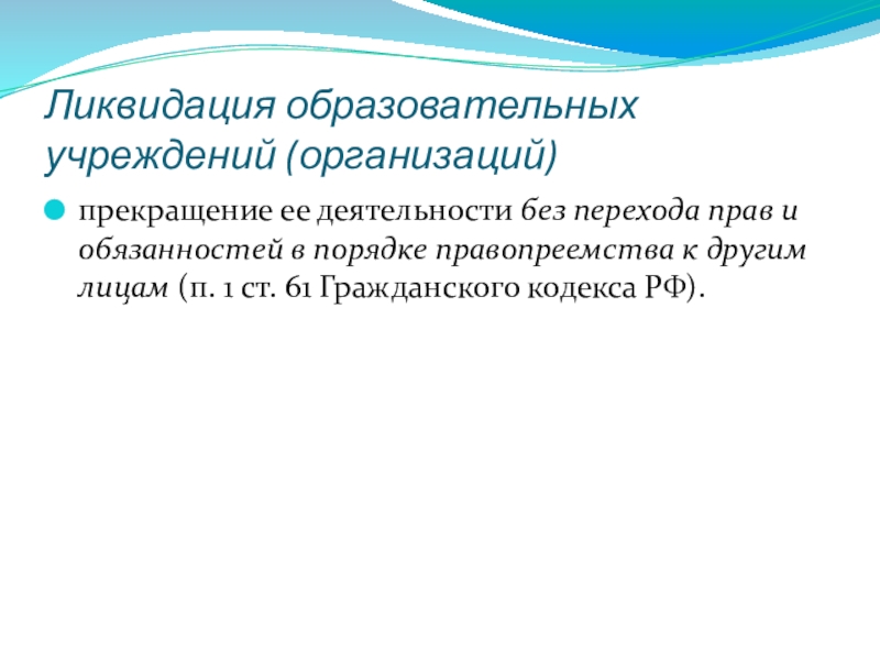 Слайд 33Ликвидация образовательных учреждений (организаций)
