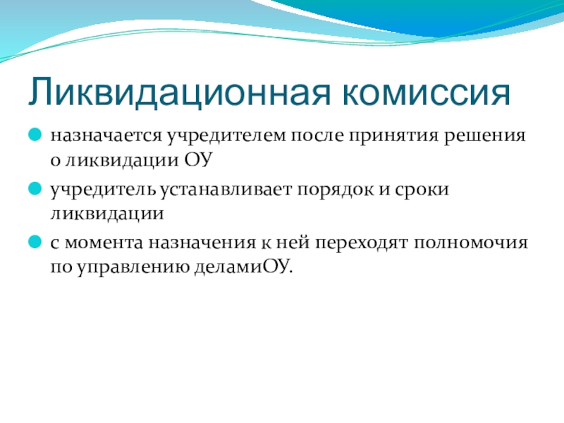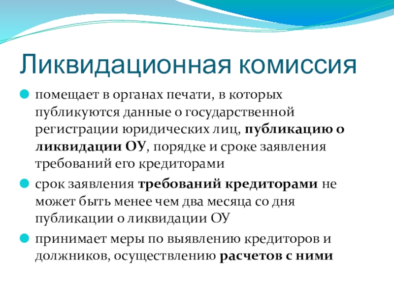 регистрации юридических лиц, публикацию о ликвидации ОУ, порядке и сроке заявления требований его кредиторами