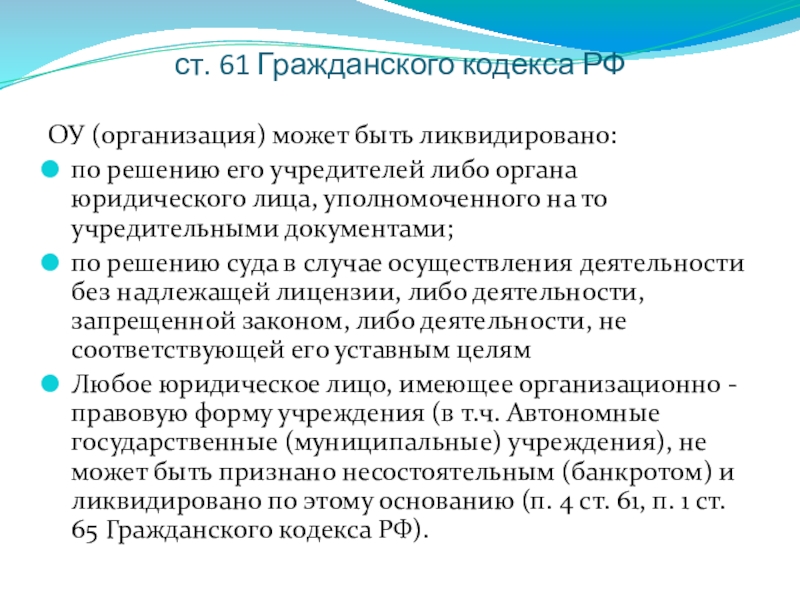 Слайд 34ст. 61 Гражданского кодекса РФ