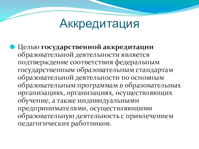 Целью государственной аккредитации образовательной деятельности является подтверждение соответствия федеральным государственным образовательным