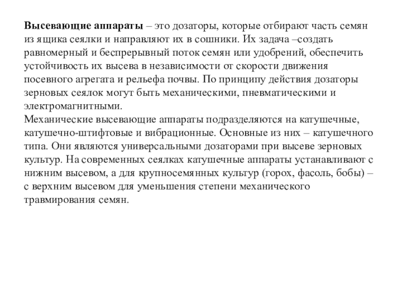 Слайд 16Высевающие аппараты – это дозаторы, которые отбирают часть семян из ящика сеялки