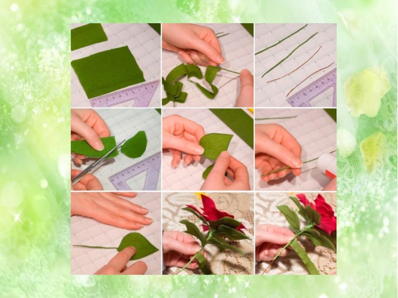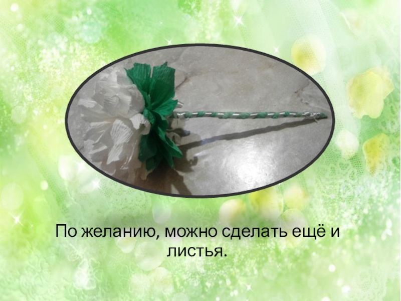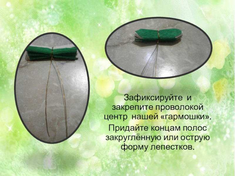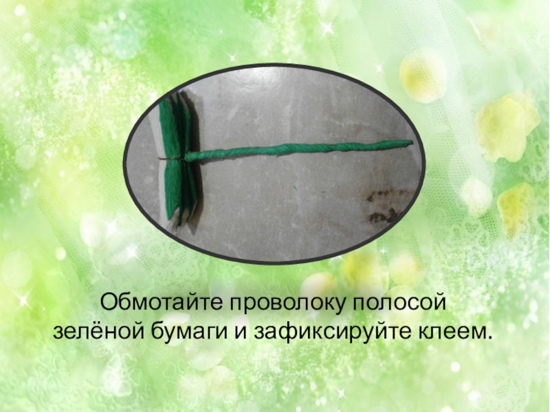 Слайд 15Обмотайте проволоку полосой зелёной бумаги и зафиксируйте клеем.