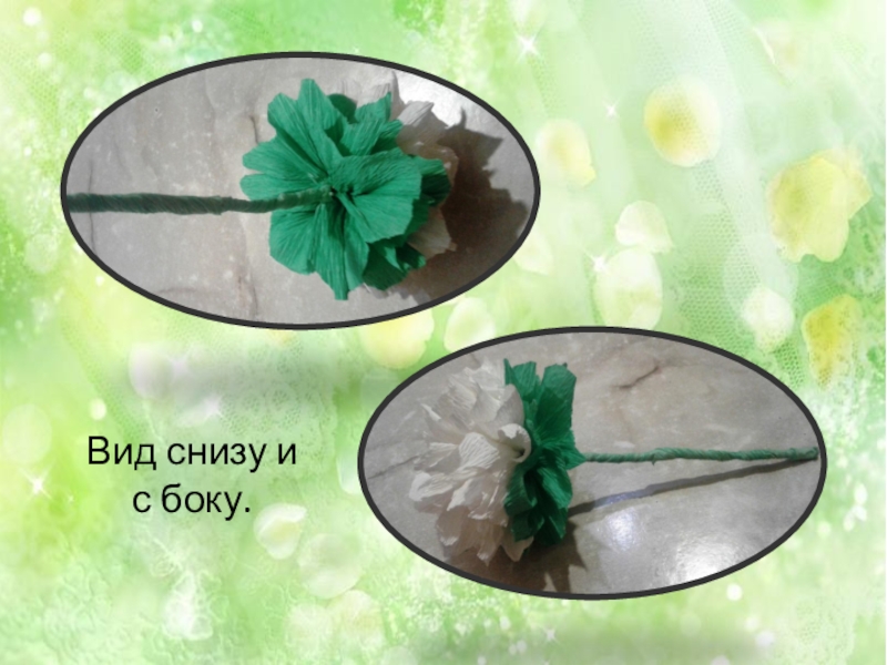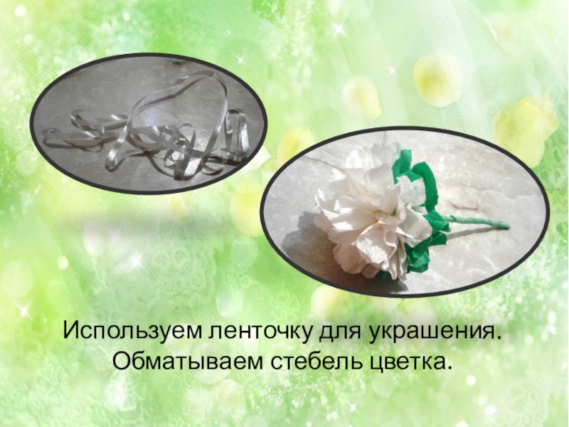 Слайд 18Используем ленточку для украшения. Обматываем стебель цветка.