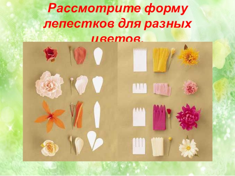 Слайд 23Рассмотрите форму лепестков для разных цветов.