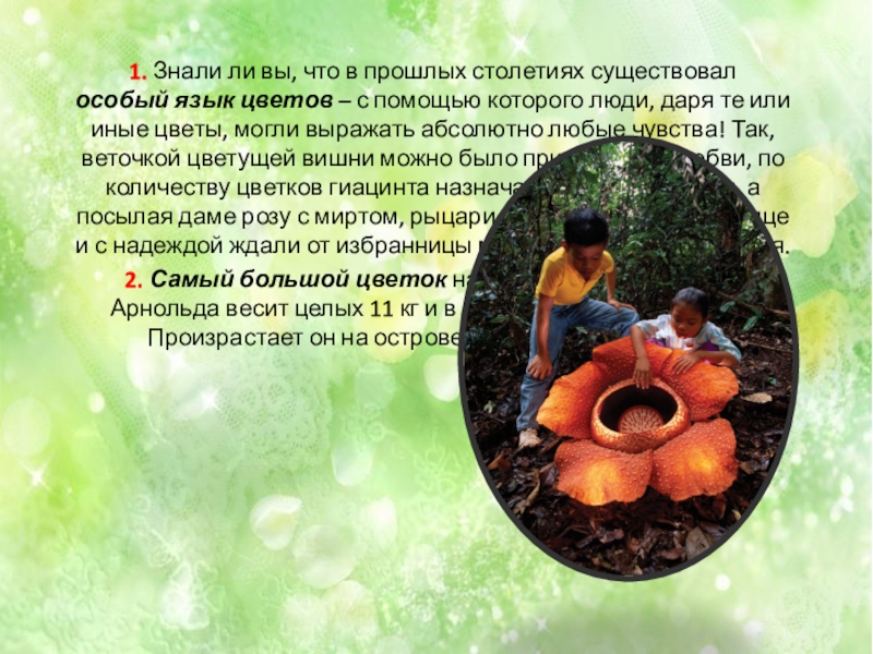 Слайд 51. Знали ли вы, что в прошлых столетиях существовал особый язык цветов –