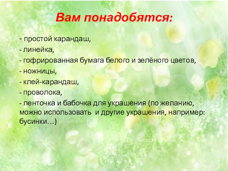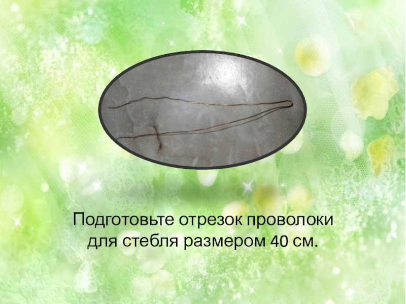 Слайд 12Подготовьте отрезок проволоки для стебля размером 40 см.