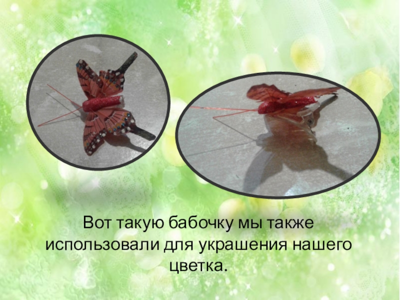 Слайд 20Вот такую бабочку мы также использовали для украшения нашего цветка.