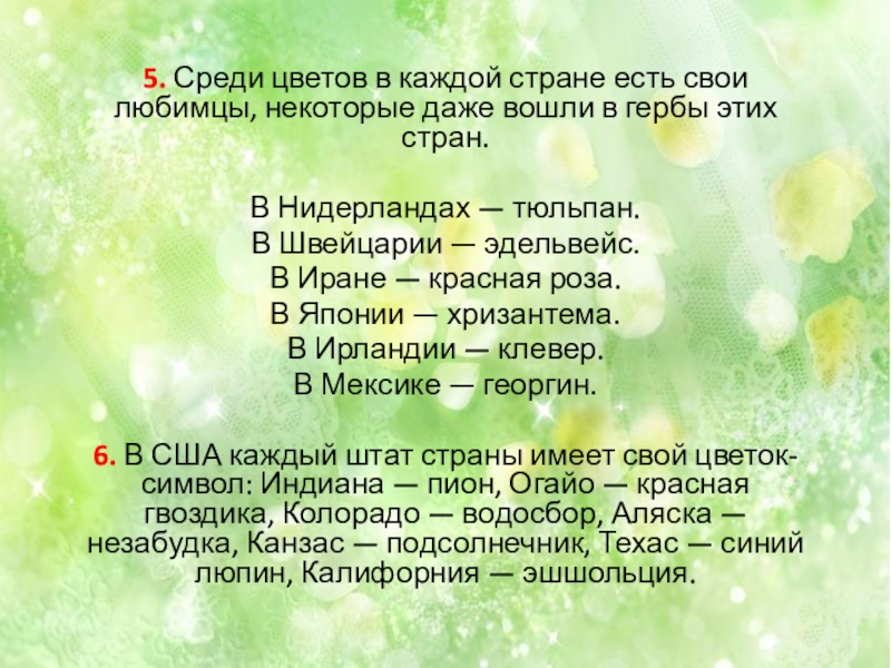Слайд 75. Среди цветов в каждой стране есть свои любимцы, некоторые даже