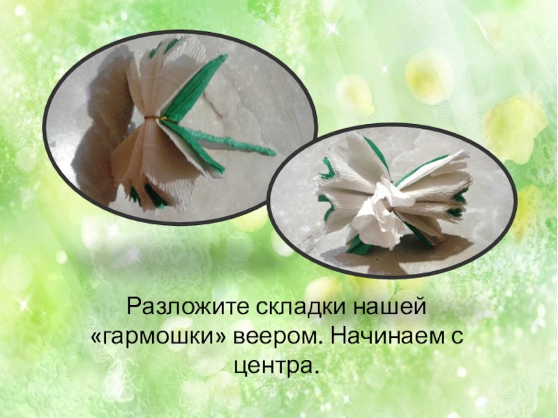 Слайд 16Разложите складки нашей «гармошки» веером. Начинаем с центра.