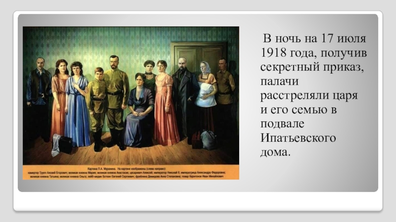 Слайд 14 В ночь на 17 июля 1918 года, получив секретный