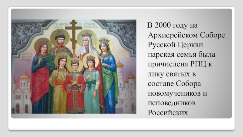 Слайд 18 В 2000 году на Архиерейском Соборе Русской Церкви царская семья