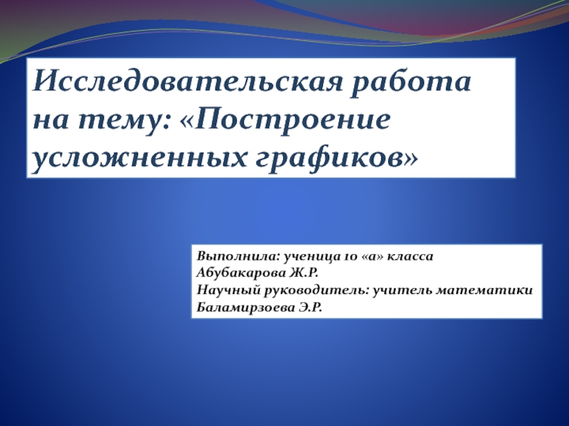 Методы исследования: решение примеров на построения усложненных графиков, сравнение, анализ, обобщение