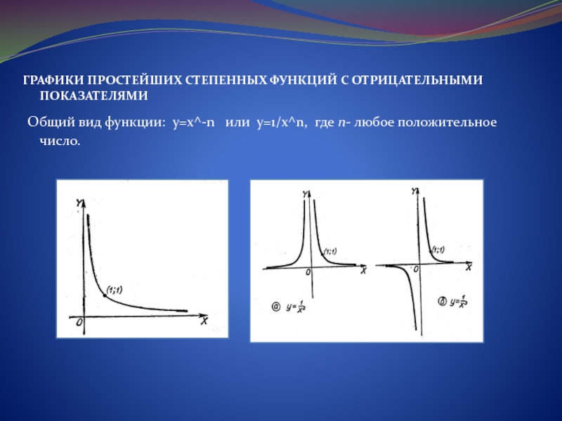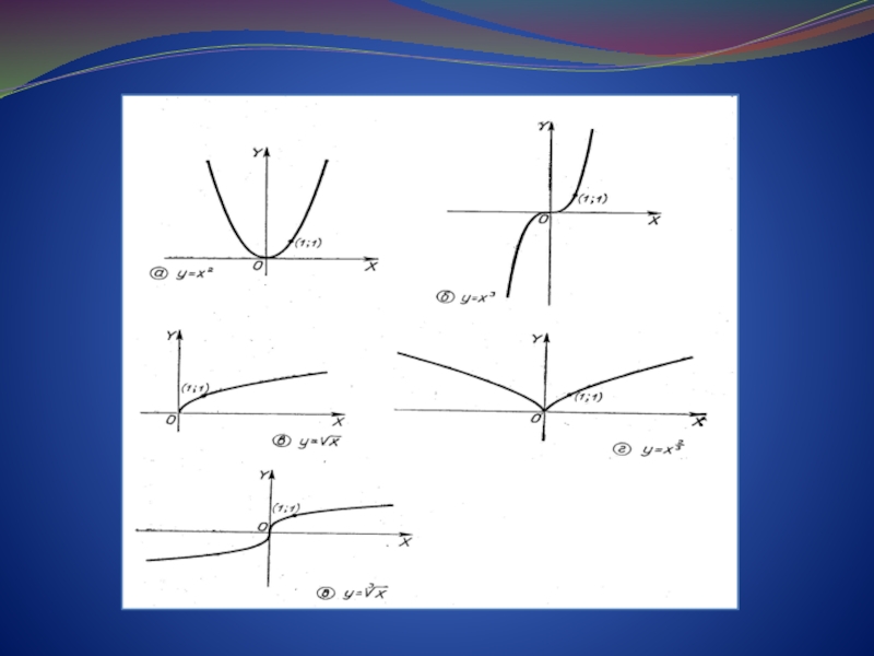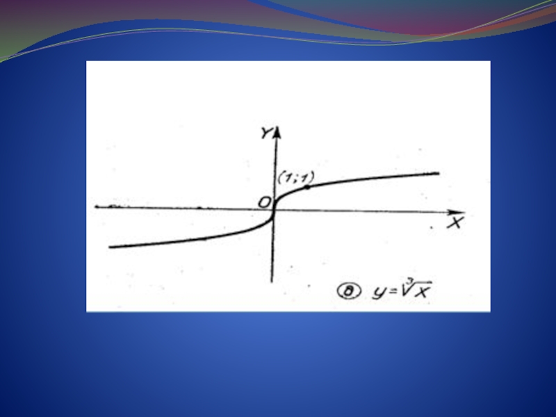 -числитель –нечётное число, знаменатель-четное число; функция существует при , так как чётная степень извлекается только из неотрицательного числа; её график расположен в 1 четверти