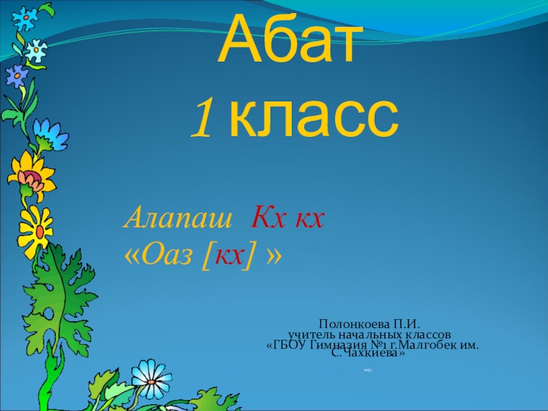Абат 1 класс  Алапаш Кх кх «Оаз [кх] »  Полонкоева П.И. учитель начальных классов