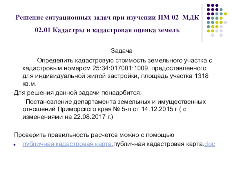 Определить кадастровую стоимость земельного участка с кадастровым номером 25:34:017001:1009, предоставленного для индивидуальной жилой застройки, площадь участка 1318 кв.м.