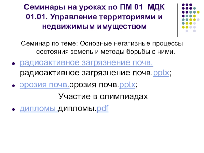 Семинар по теме: Основные негативные процессы состояния земель и методы борьбы с ними.