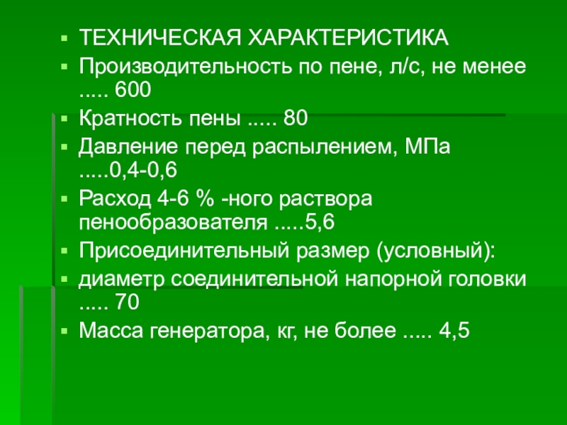 Производительность по пене, л/с, не менее ..... 600