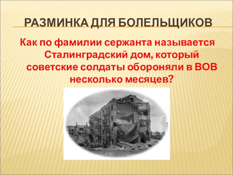 Как по фамилии сержанта называется Сталинградский дом, который советские