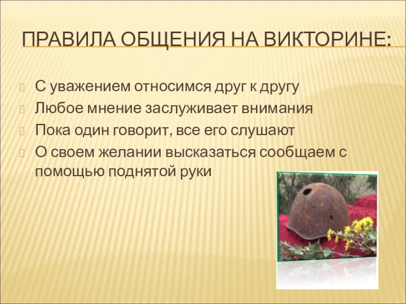 Слайд 3ПРАВИЛА ОБЩЕНИЯ НА ВИКТОРИНЕ: