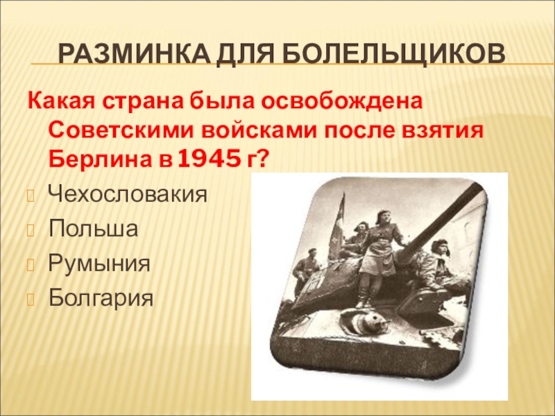 Какая страна была освобождена Советскими войсками после взятия Берлина