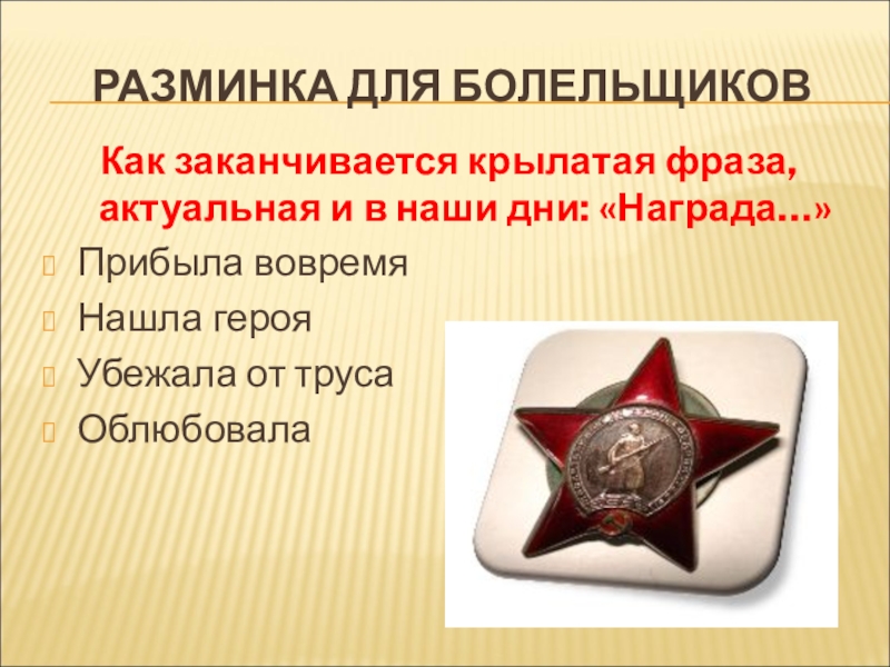 Слайд 7РАЗМИНКА ДЛЯ БОЛЕЛЬЩИКОВ