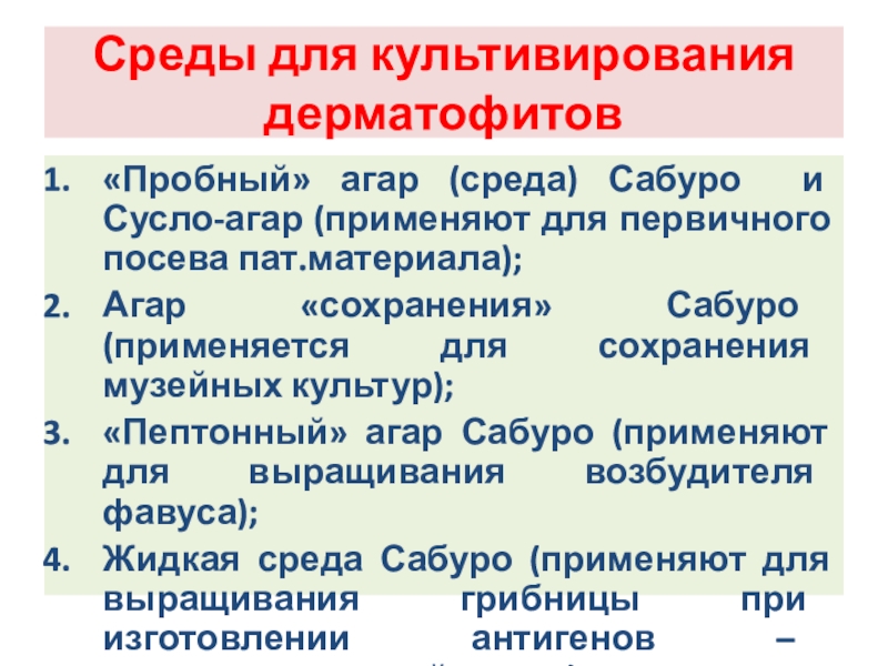 Слайд 114Среды для культивирования дерматофитов