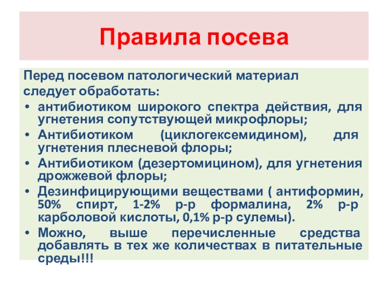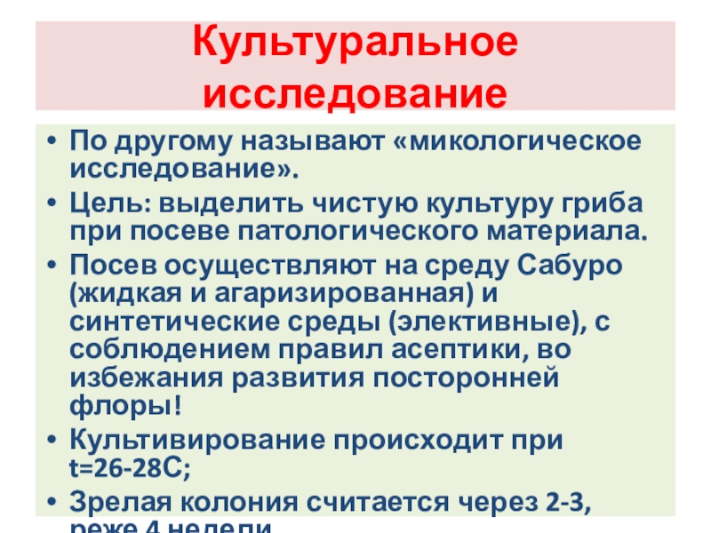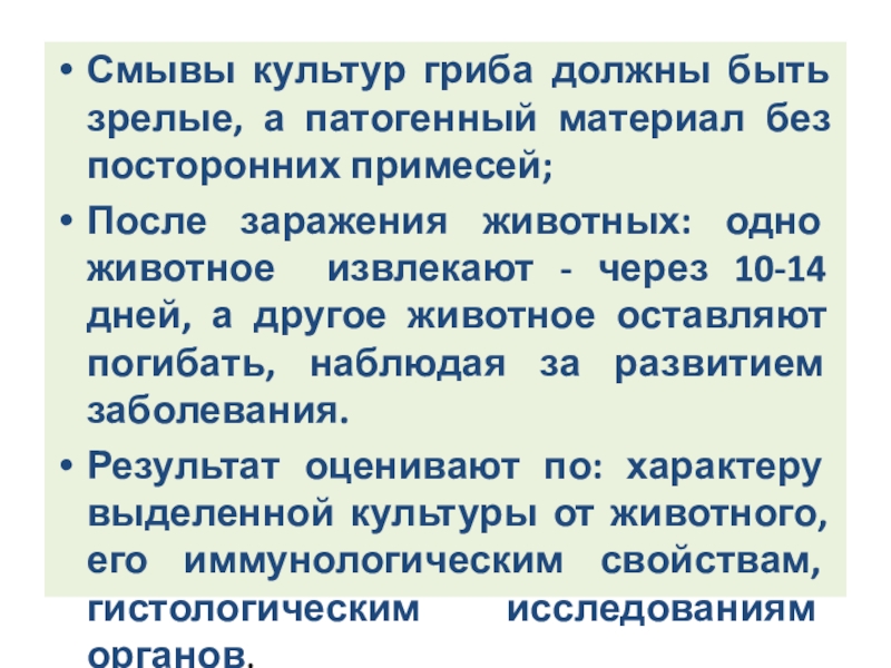 Слайд 116Смывы культур гриба должны быть зрелые, а патогенный материал без посторонних