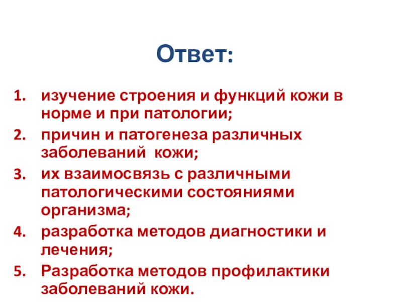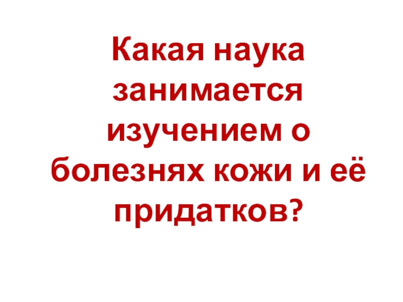 Слайд 5Какая наука занимается изучением о болезнях кожи и её придатков?