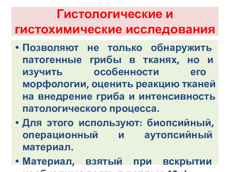 но и изучить особенности его морфологии, оценить реакцию тканей на внедрение гриба и интенсивность патологического процесса.