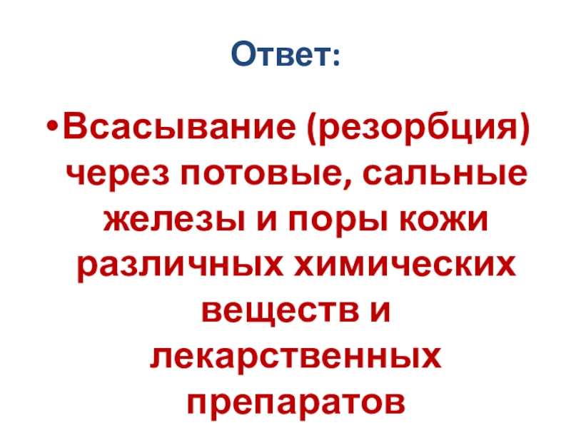 Слайд 26Всасывающая функция кожи отвечает за…?