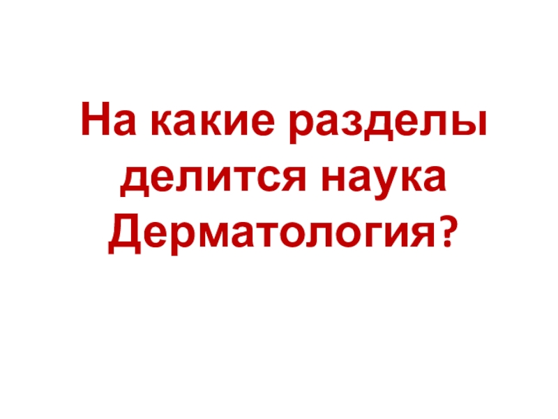 Слайд 9На какие разделы делится наука Дерматология?