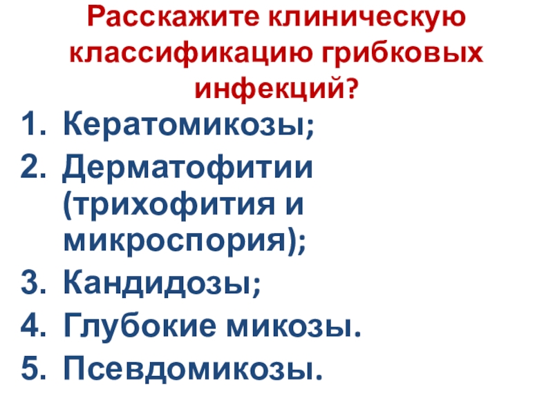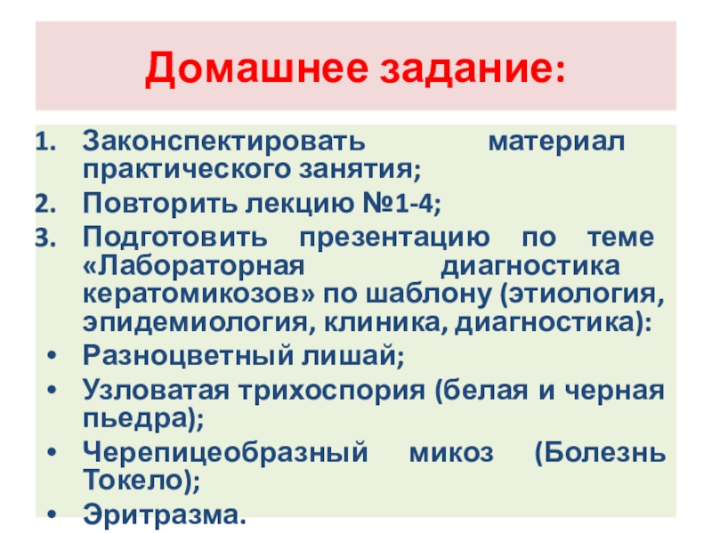 диагностика кератомикозов» по шаблону (этиология, эпидемиология, клиника, диагностика):