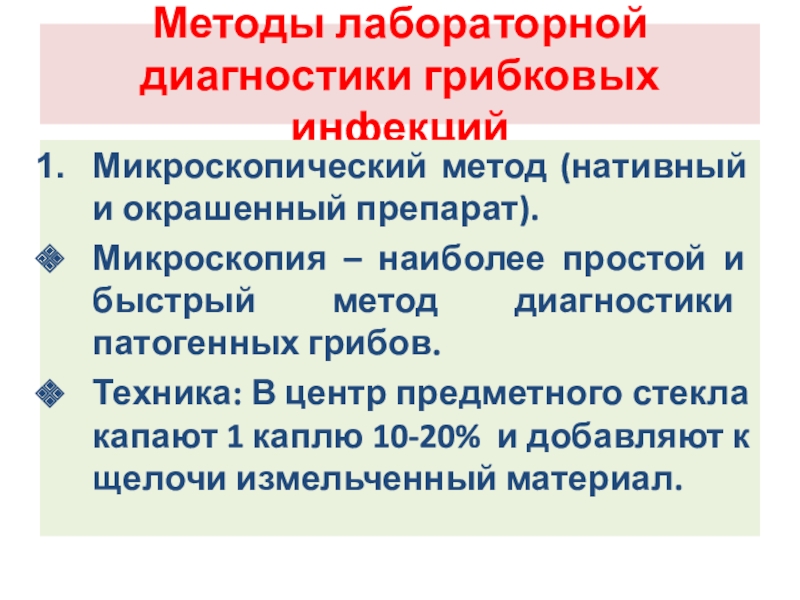 наиболее простой и быстрый метод диагностики патогенных грибов.