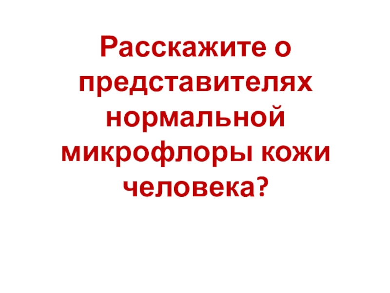 Слайд 36Расскажите о представителях нормальной микрофлоры кожи человека?