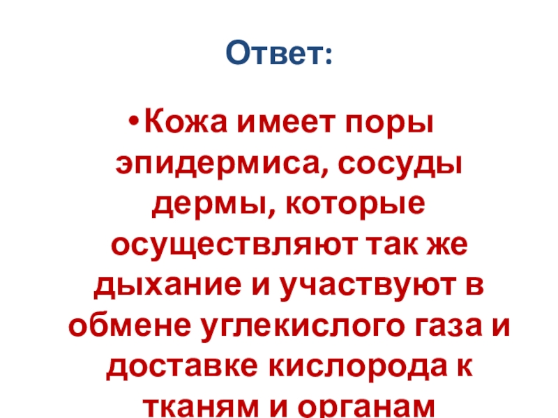 Слайд 28В чем заключается смысл дыхательной функции кожи?