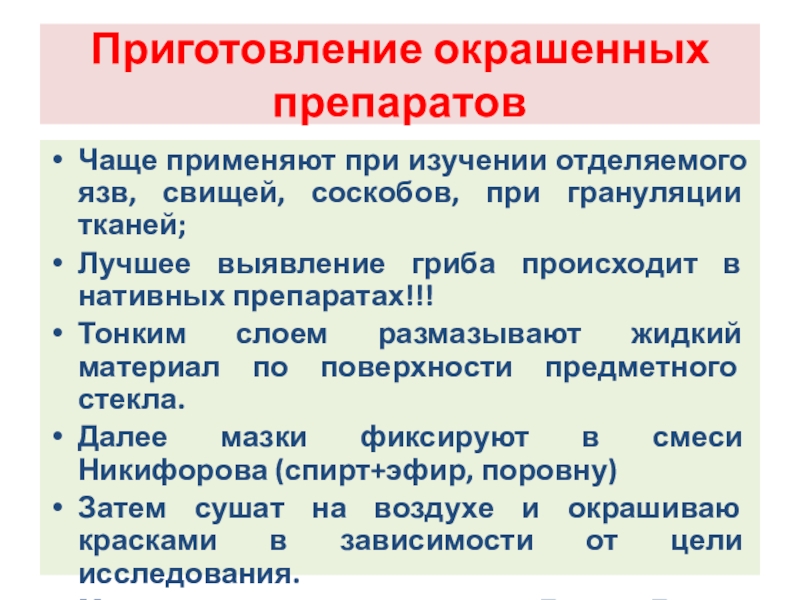 Слайд 106Приготовление окрашенных препаратов