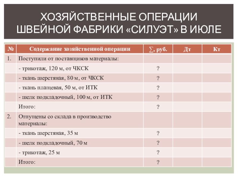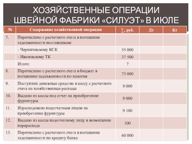 Цель занятия – усвоение порядка отражения хозяйственных операций на счетах синтетического и аналитического учета