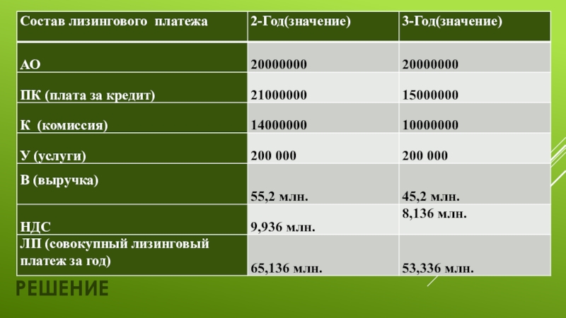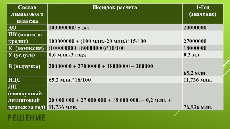 Слайд 5Расчет лизинговых платежей.