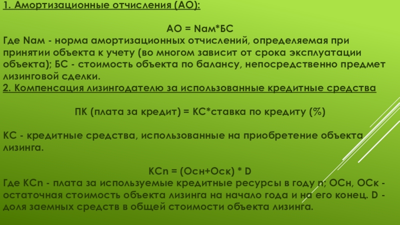 Слайд 61. Амортизационные отчисления (АО):